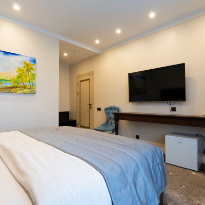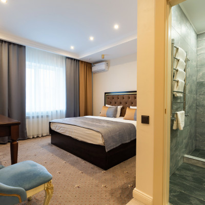 Номер улучшенный стандарт выполнен в классическом стиле. В расположении гостей двухместная кровать (180х200) с ортопедическим матрасом, плазменная панель, интерактивное спутниковое телевидение, гардероб, стол, холодильник, набор для приготовления чая/кофе, бутилированная вода.